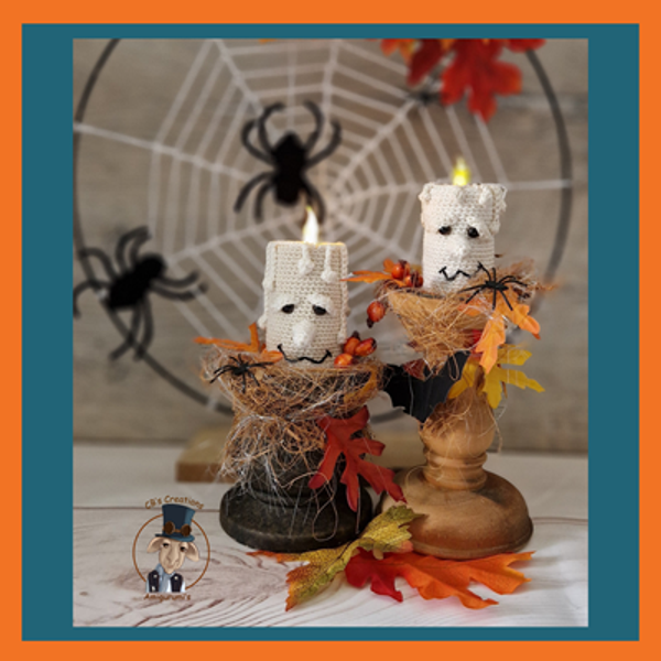 Amigurumi Crochet Pattern of 2 Halloween Candles with spiders and spider web