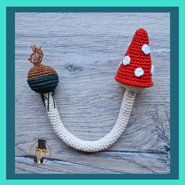 Amigurumi crochet pattern bag hanger mushroom with long handle to tie